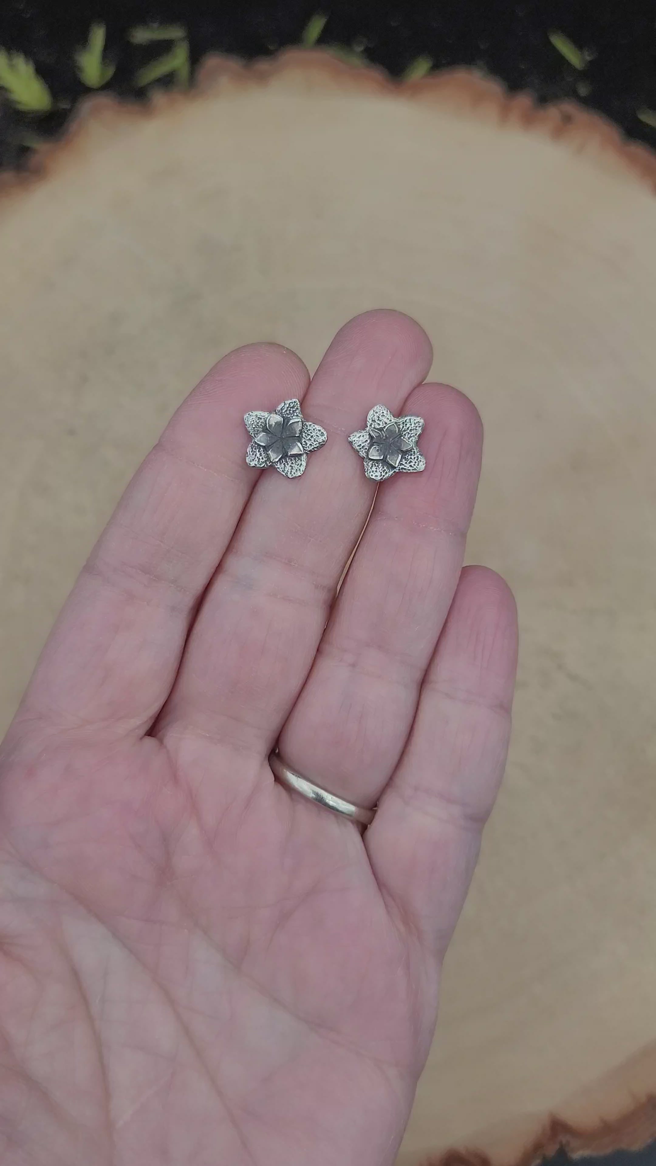These tiny little stars of happiness are a flower from the hoya plant. You can almost smell their unique scents when you admire them, can't you? These stud earrings are entirely handmade from sterling silver. About 1/2 inch tall, each will be unique because of their truly handmade nature when they are brought to life.