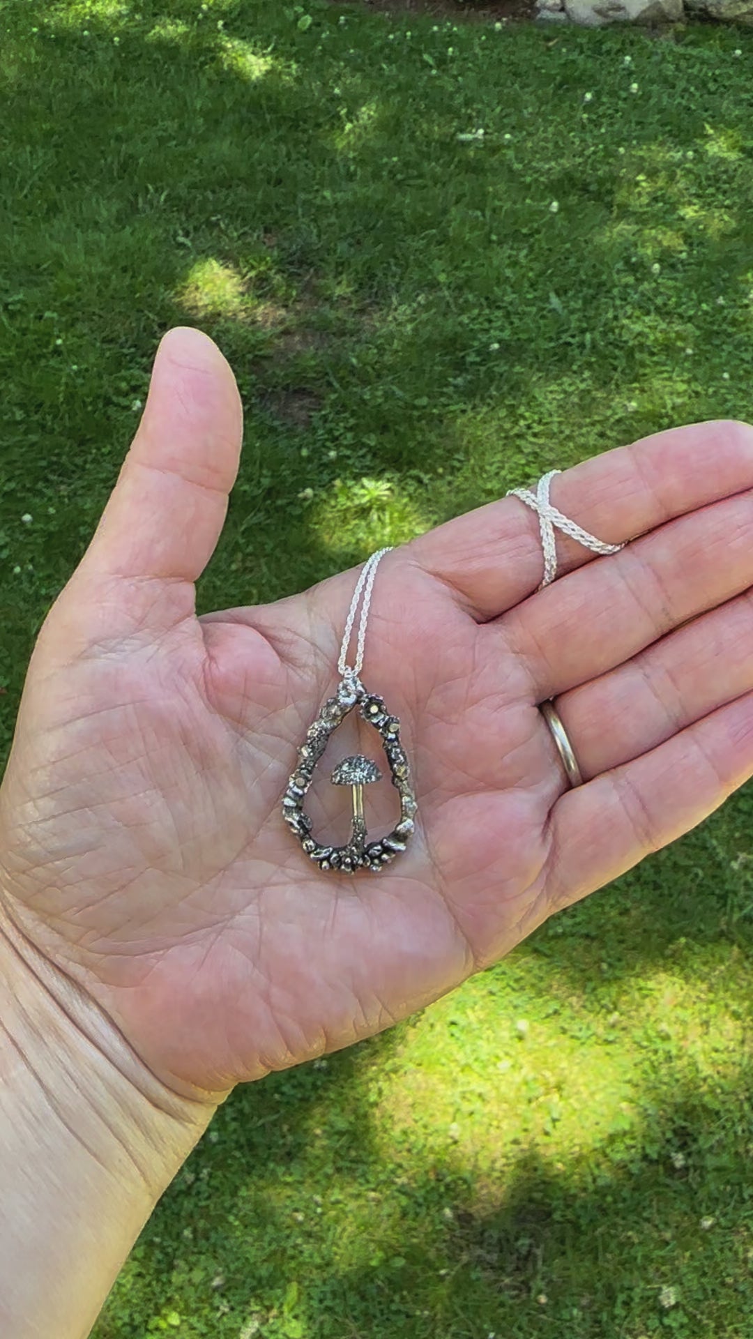 The pendant itself measures about 1.5 inches tall and is about 1 inch wide. It comes on an 18 inch long sterling silver necklace making it ready to wear. Already completed designs such as this mushroom necklace will be packaged up and mailed off to you within 3-5 business days.
