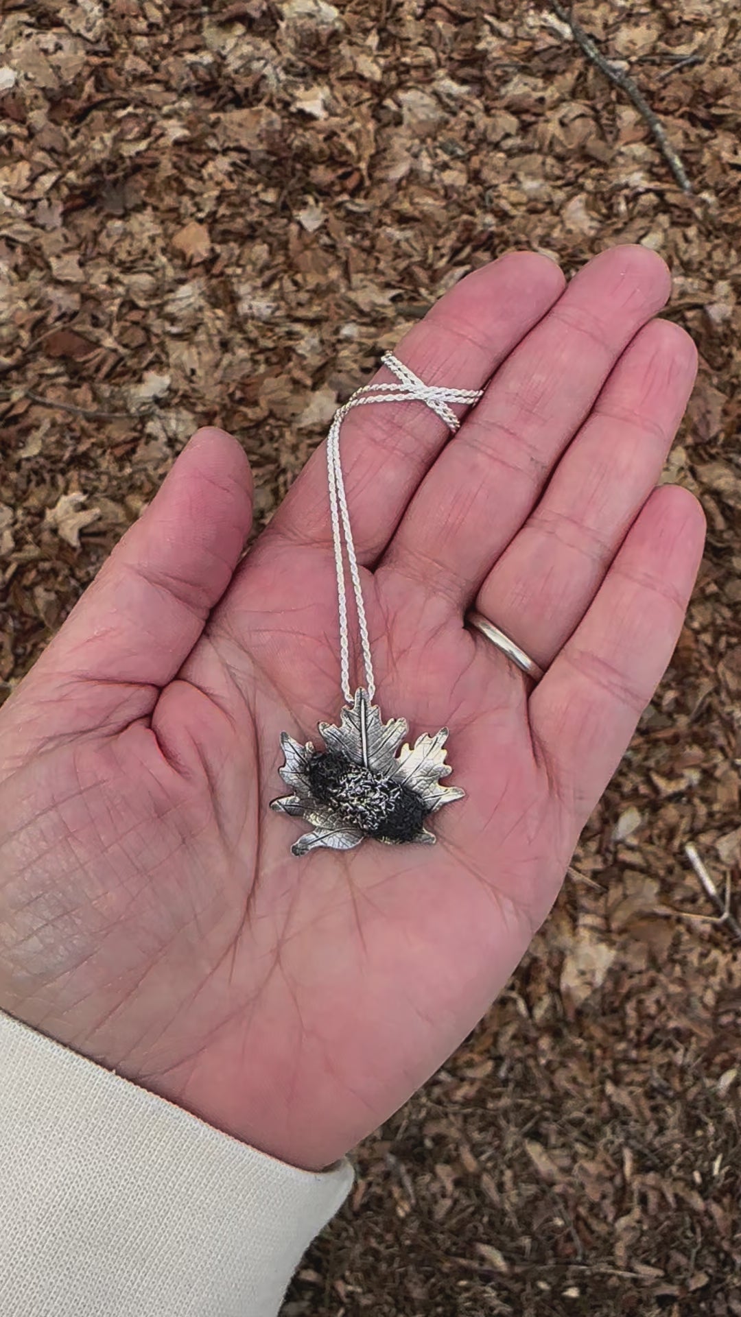These tiny friends are entirely handmade from scratch with sterling silver. Each tiny tuft of fuzz is hand cut and placed piece by piece with tweezers. There is one made but I will create 2 more making them to order for a total of 3 woolly bear caterpillar necklaces. Your fuzzy friend will come to you on a maple leaf that was etched using a real leaf making them one of a kind. It will also be on an 18 inch long sterling silver rope necklace chain making him ready to wear.